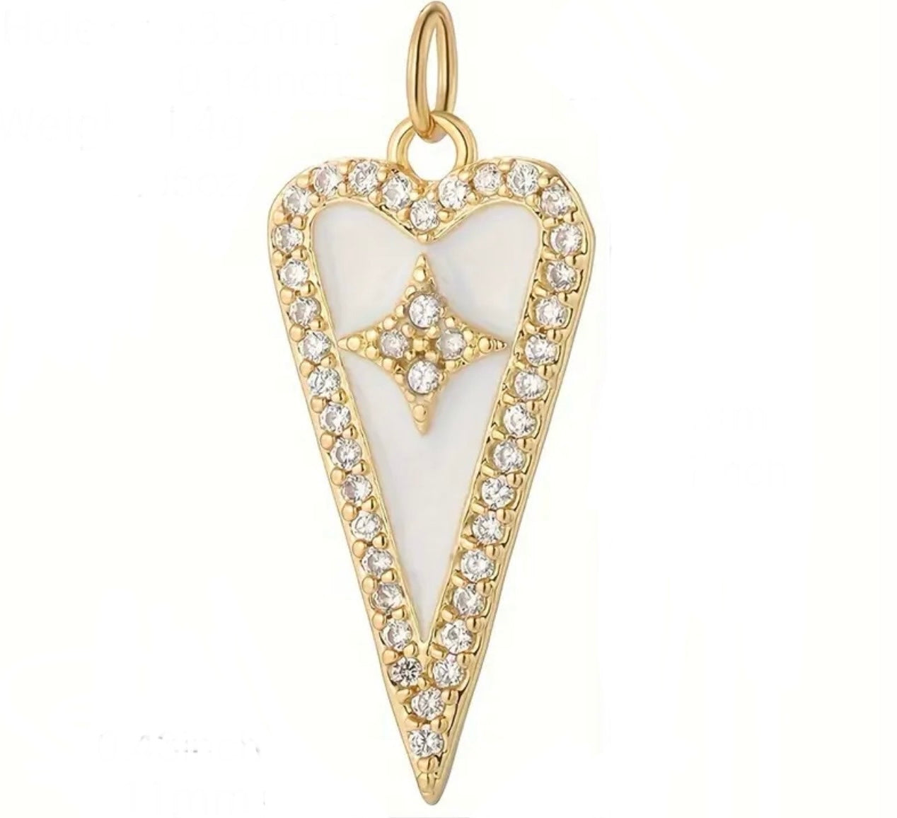 22x11mm 14k Gold plated white enamel and cz long heart.