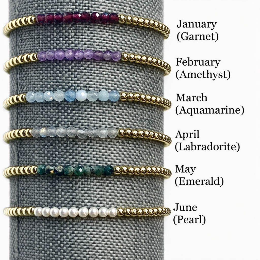 A delicate 2mm 14K gold elastic beaded ring, paired with your choice of a genuine natural birthstone. Each stone is perfectly imperfect — unique in shape and color — making every Luna Ring one of a kind. Whether it’s your birth month, a loved one’s, or simply your favorite, this piece adds a personal, meaningful touch to your stack.